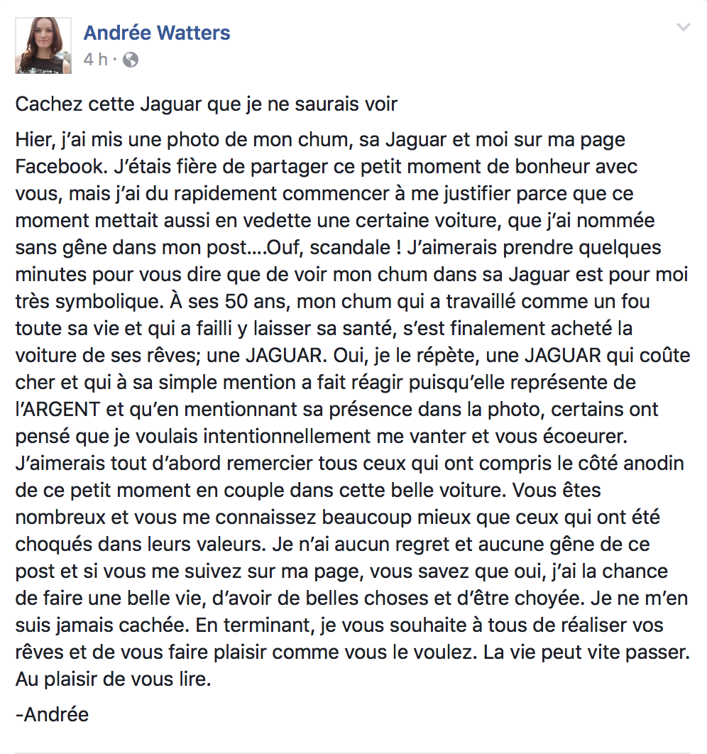 Demandez à Andrée Watters et Sylvain Cossette qui se promènent en Jaguar… ????