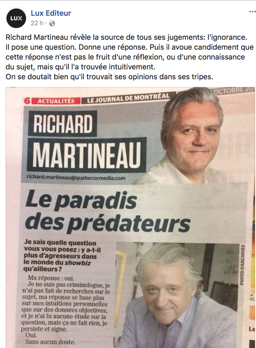 La réponse intuitive de Richard Martineau… L’intuition personelle VS des données objectives!🤔🤔🤔 Commentaire inutile à m’envoyer: trop compliqué pour moi (un lecteur du JDM!) Navigation des articles ← Une zone de guerre? Non… Montréal! Est-ce que c’est la pire pub jamais faite? →