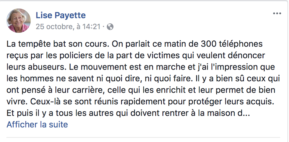Qu’est-ce qu’on retrouve sous les statuts Facebook concernant Lise Payette?