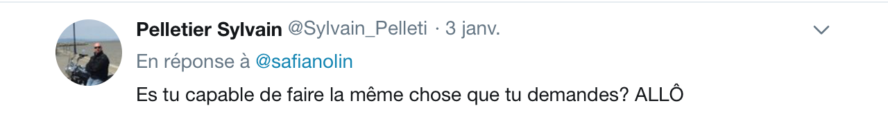Safia devrait lâcher Twitter… Parce que si ça continue comme ça… l’année va être longue pour elle! Commentaire inutile à m’envoyer: elle a un nouveau disque à sortir? Navigation des articles ← Pourquoi Béatrice est en bobette sur son balcon? Merci TVA, le Québec est aussi raciste qu’en 2017! →