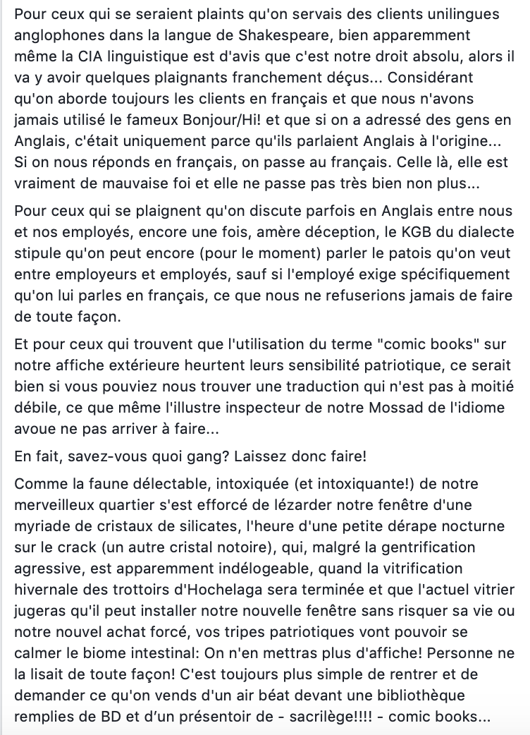 Lorsque la loi 101 frappe un libraire! Histoire assez débile! Commentaire inutile à m’envoyer: what? Navigation des articles ← 10$ que ça lui a pris 4 heures à préparer… He boboye… →
