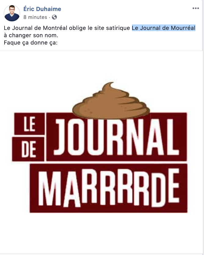 Le Journal de Mourréal a un nouveau nom… et ça fesse! Baveux en chien! Commentaire inutile à m’envoyer: c’est mieux que le Journal de Montréal! Navigation des articles ← Pourquoi le compte Twitter de TLMEP est suspendu???? Maudit qu’il faut être patient pour chauffer un bus à MTL! →