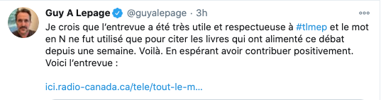 Au sujet du N-Word de @guyalepage #tlmep hier soir…pfff pic.twitter.com/dnJ6MtnuiI