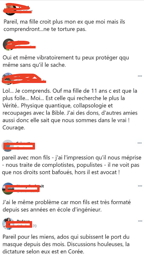 Lorsque le complotisme brise des familles… Incroyable quand même! Commentaire inutile à m’envoyer: ça va être beau à Noël! Navigation des articles ← Est-ce que ce genre de déclaration met du gaz sur le feu des conspirationistes. TLMEP avec une influenceuse comme première invitée! →