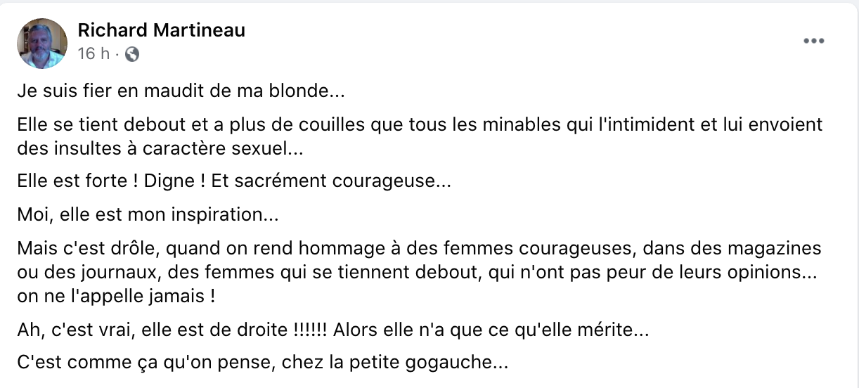 Richard est encore fru fru que Sophie ne soit pas dans les médias! Concernant les femmes fortes! Commentaire inutile à m’envoyer: toujours la faute de la gauche! Navigation des articles ← Bah pourquoi pas le laisser vendre ses trucs! Le Québec commente la gratuité des serviettes sanitaires!!! →