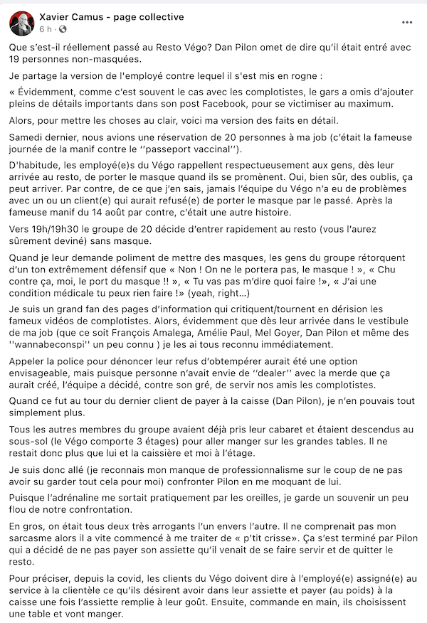 Autre version: Suivi de post sur Dan Pilon qui se fait sortir d’un resto… Tiens, tiens, tiens… Commentaire inutile à m’envoyer: un coucou végé, j’ai mon voyage! Navigation des articles ← Il y a vraiment des gens qui achètent ça??? Yves-François Blanchet ne veut pas répondre aux questions de Rebel News! →