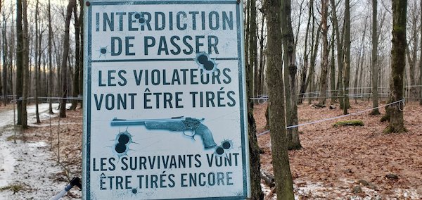 C’est ben heavy Drummondville!!! Quelqu’un a fait le test pour voir si c’est une joke? đđđ Commentaire inutile Ă mâenvoyer: c’est chez guy Morin? Navigation des articles ← 240 employĂ©s VS un riche animateur radio qui a pas renouvelĂ© son contrat! Lucie Laurier est encore dans les merdias avec cette affiche de film! → 14 Commentaires Commentaires en ligne Afficher tous les commentaires Rix 2 annĂ©es il y a Changez Violateurs pour violeurs pis je deviens pas mal d’accord … Sur la deuxiĂšme pancarte... 2 annĂ©es il y a RĂ©pondre Ă Rix C’est indiquĂ©,  » J’en ai assez grand pour t’enterrer » . Endstille 2 annĂ©es il y a Ăa pourrait ĂȘtre pas loin de St-Ăphrem… Sans objet 2 annĂ©es il y a Plus cowboy qu’Ă ste-tite Je dis ça de mĂȘme... 2 annĂ©es il y a Si nous sommes pour la libertĂ© d’expression… Poubelles, sortons les. 2 annĂ©es il y a Le droit de dĂ©fendre sa propriĂ©tĂ© n’existe pas vraiment au Canada. Des gens peuvent venir sur ton terrain et tout ce que tu peux faire lĂ©galement est leur demander de quitter ou appeler la police et espĂ©rer qu’ils arrivent pendant que les gars sont lĂ pour eux-mĂȘmes leur demander de quitter. Ce qui n’arrivera jamais car ce n’est pas du tout une prioritĂ© pour la police. Olivier Primate 2 annĂ©es il y a RĂ©pondre Ă Poubelles, sortons les. Faux. La force doit ĂȘtre proportionnelle et raisonnable face Ă la menace. La jurisprudence au Canada est claire sur ça. https://globalnews.ca/news/4051618/what-rights-do-you-have-to-defend-your-property-in-canada/amp/ Crack Pot 2 annĂ©es il y a RĂ©pondre Ă Olivier Primate Quand mĂȘme plus vrai que faux. Les cas de lĂ©gitime dĂ©fense sont trĂšs rares au Canada. Quelqu’un pĂ©nĂštre chez toi avec un bat la nuit et tu le tires: t’es pas sorti du bois. Parce que, ici, on va prĂ©sumer que l’intrus avait perdu sa montre pis qu’il se cherchait juste un joueur de plus pour sa partie nocturne… Olivier Primate 2 annĂ©es il y a RĂ©pondre Ă Crack Pot Quelquâun avec un bat? Tu sors le tiens. Proportionnel. Raisonnable. Je ne connaissais pas ce mot. 2 annĂ©es il y a violateur Prononciation nom LITTĂRAIRE Personne qui profane ce qui doit ĂȘtre respectĂ©. Mots de sens similaire : profanateur Pouce en l'air 2 annĂ©es il y a J’allais le dire. Merci ! Crack Pot 2 annĂ©es il y a C’est du sang qui coulent dans les tubulures de cette Ă©rabliĂšre de vampires? Robert le Constructeur 2 annĂ©es il y a C’est quoi un violateur? Un violeur qui commet un vol en mĂȘme temps que son viol? Si tel est le cas, je suis d’accord pour le tirer, ce genre de personne ne mĂ©rite pas de vivre. Si c’est seulement un intrus, le tirer c’est peut-ĂȘtre un peu extrĂȘme. C’est peut-ĂȘtre un analphabĂšte qui ne peut pas lire le panneau. Ou bien un non voyant, ou des jeunes qui jouent dans le bois Ă se faire des cabanes. Peanut BĂ©dard 2 annĂ©es il y a J’approuve!