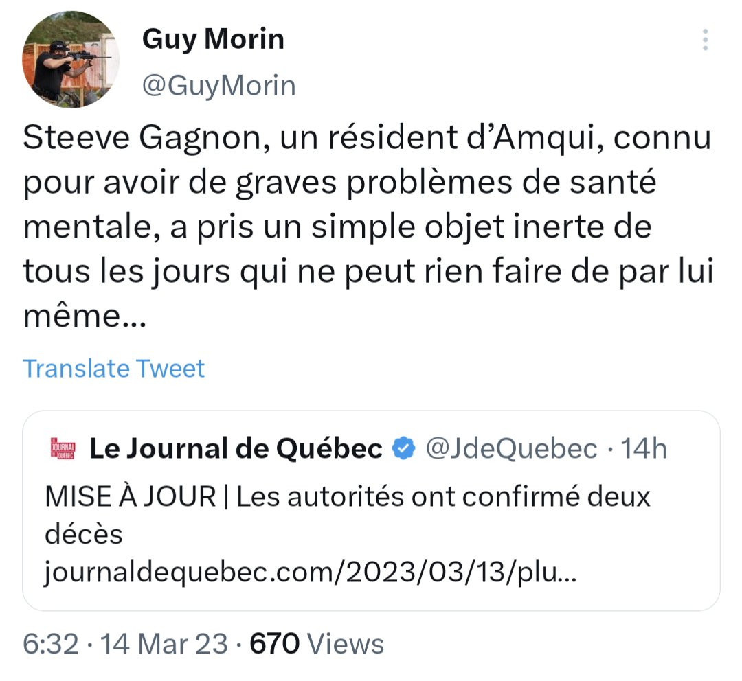 Le commentaire du gars qui trip sur les guns concernant le drame d’Amqui!