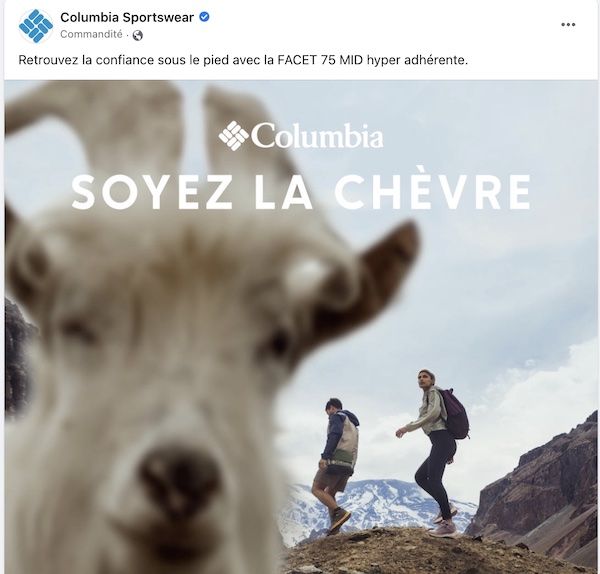 Maudit que t’es crétin. En anglais ça joue sur GOAT (Greatest of All Time) et goat (chèvre). Jeu de mots intraduisible en français. Mais quand on regarde la pub, on comprend bien que ce qu’ils veulent dire, c’est qu’avec de telles chaussures de randonnée, on sera comme une chèvre des montagnes.. et non comme le plus grand de tous les temps.