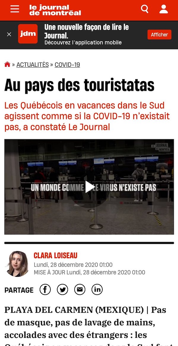 « lle a rapporté ce qu’elle a vu à Cancun, avec plusieurs exemples démontrant que les Québécois n’y suivaient pas les règles sanitaires en vigueur contre la COVID. »