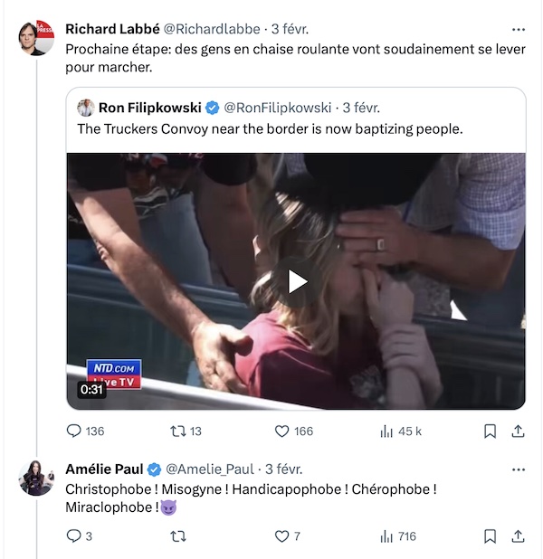 On s’entend Amélie Paul est une coucou sans talent, mais Richard Labbé aurait-il la même audace à propos du port du voile ?