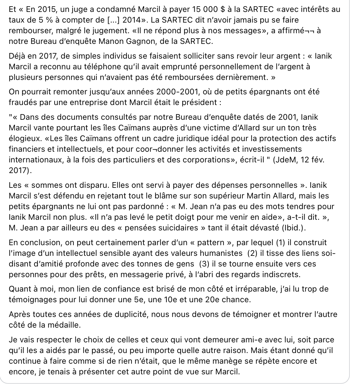 Et voici le texte un peu plus court de Xavier Camus si Ianik Marcil était de droite: