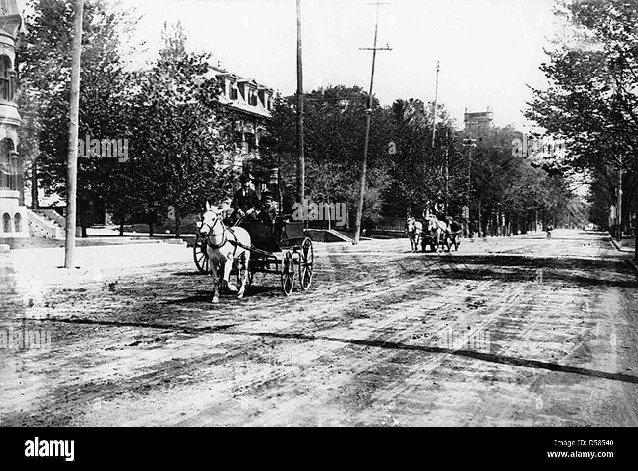 Montréal, avant la venue de l’auto. Marcher dans un mélange de bouette et d’excréments de chevaux, on aimerait tous retourner dans ce temps là.