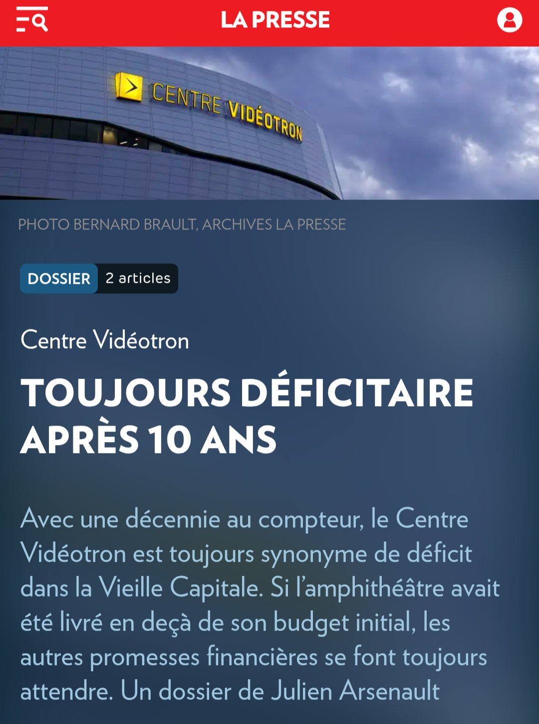 Centre Vidéotron | Toujours déficitaire après 10 ans
