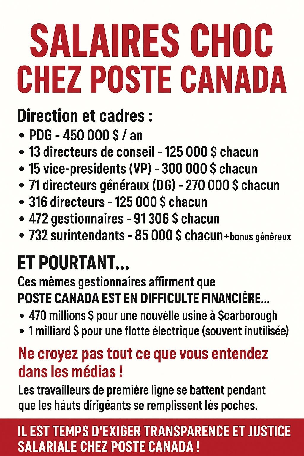 Pas un mot sur les salaires exorbitants des camelots de luxe, leurs fonds de pensions à prestation déterminées et la livraison du courrier à domicile toujours offerte à grands frais en 2025.