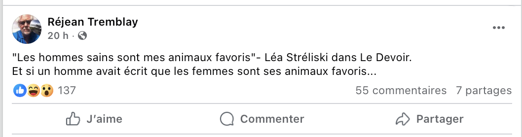 Montée de lait? Il n’a que souligné un commentaire ridicule qui démontre le doubl3 standard que Léa a fait dans son poste. Ça m’arrive aussi de dire des niaiseries. Y’a pas de quoi fouetter un chat.