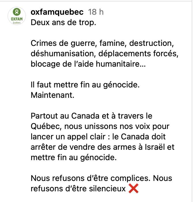 Tu regarderas les intérêts financier de l’ONU, la partialité d’Oxfam, et les deux organisations de GAUCHE israelienne.