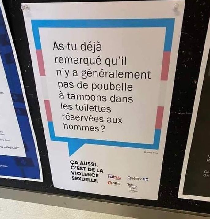 Donc un « homme » qui ne trouve pas de poubelle pour mettre son tampon est une victime au même titre qu’une femme qui se fait agresser sexuellement ?