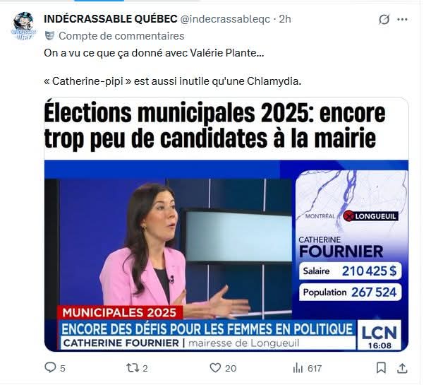 Encore la cassette de la victimite. À cause d’un compte anonyme inconnu avant que le journal de Québec fasse un article là dessus.