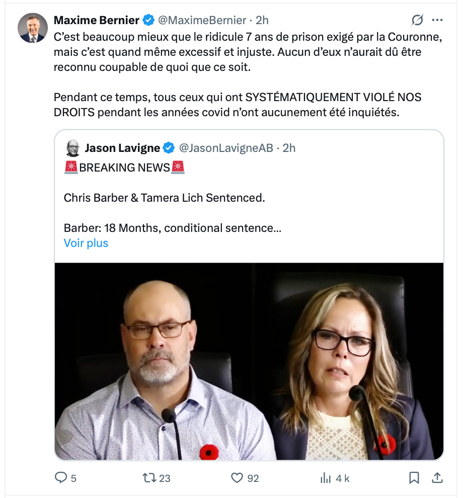Réaction de Bernier sur la sentence des coucous kemions!