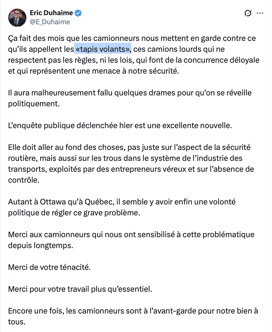 Parce qu’avant l’arrivée des tapis volants, nos camionneurs, c’était du monde super respectueux des règles de la route et des quotas d’heures/jour. De vrais gentlemen qui ne causaient jamais d’incident, encore moins aujourd’hui.