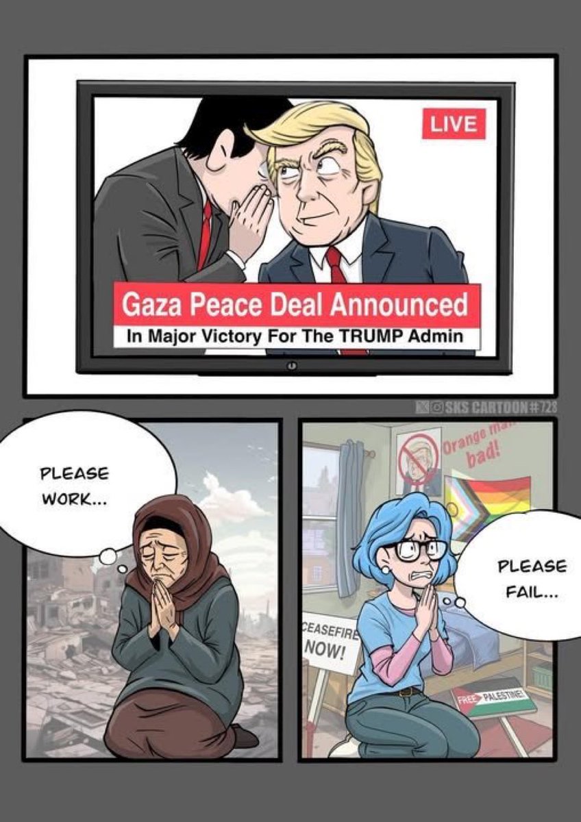 Je suis tombé sur un segment d’entrevue où l’une de leur « essperte » ne voulait absolument pas donner la moindre parcelle de crédit à Trump pour cet accord de paix.