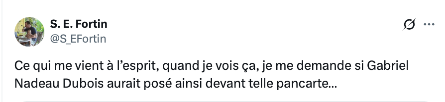« Tellement drôle les édentés Trumpistes qui essayent de nous faire croire que la politique municipale c’est surtout un combat entre gauchistes et extrême-gauchistes LOL avec Coderre on a été sous un régime néolibéral! ».