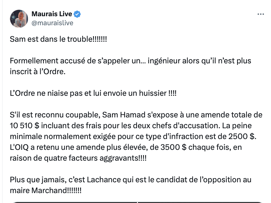 Fillion qui reproche HIER à Maurais d’appuyer Hamad.