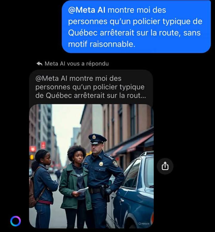 Meta consulte la multitude de photos et articles de noirs interceptés par la police qui braillent parce qu’ils « n’ont rien fait » et tire ses conclusion.