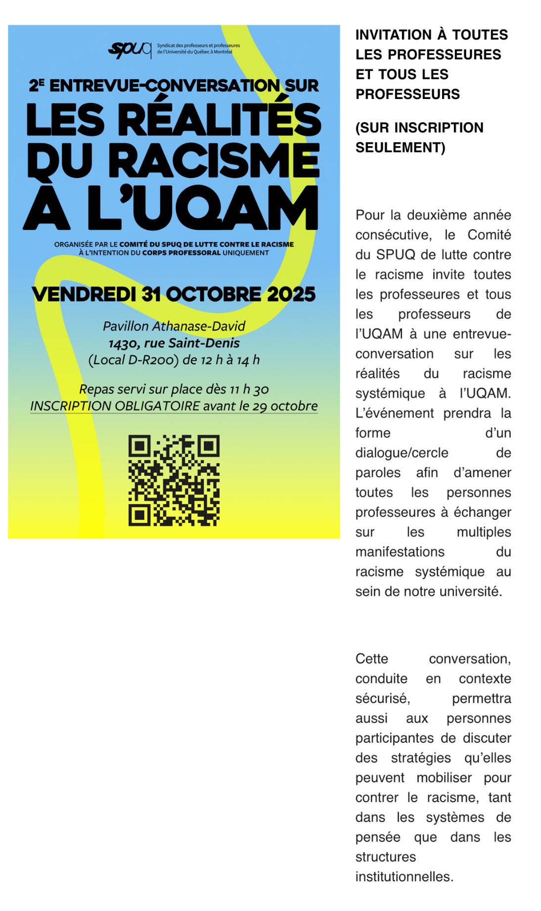 Quand même spécial que les manifestations de racisme semblent se retrouver uniquement dans des lieux plein de gauchistes comme l’UQAM.