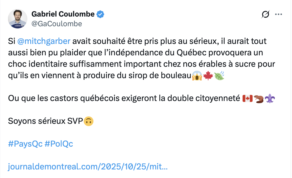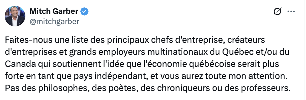 Même Michel Girard chroniqueur du J de Mtl de PKP a fait exactement le même constat la semaine dernière. Un Québec séparé est « viable » tout comme un itinérant démuni est « viable ».