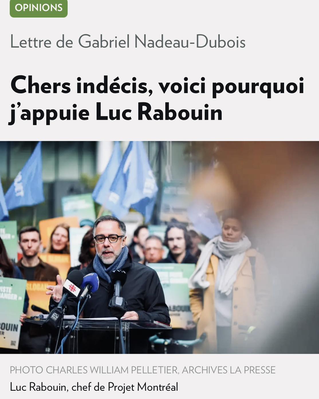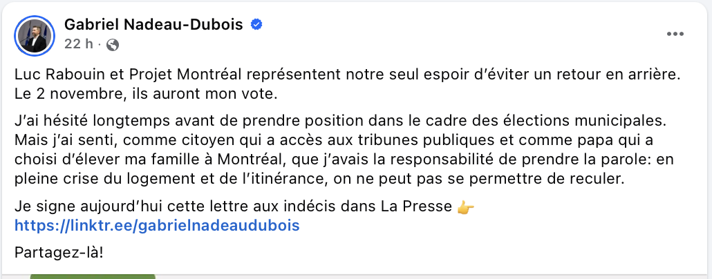 Tu sous estime le degré inexistant de culture politique du Québécois moyen, et de l’immigrant encore plus moyen. Ce genre de militantisme de GND n’est pas désintéressé. Comme il ne compte pas se représenté sous Ruba, il commence son après carrière dès maintenant, avec cette lettre.