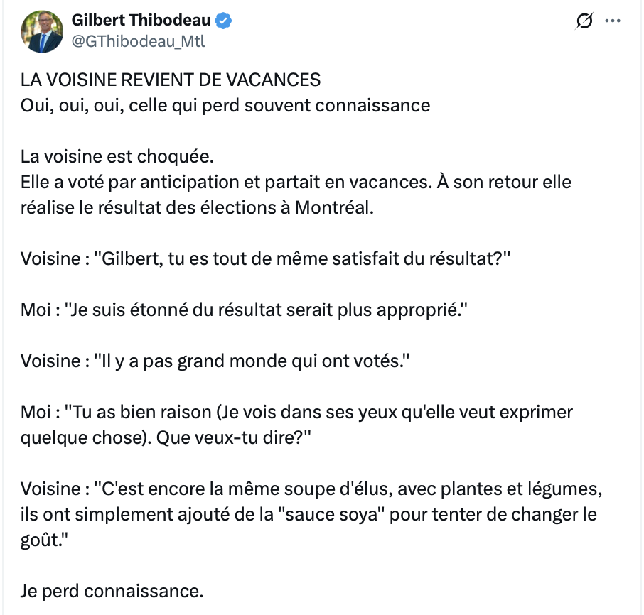 Ta voisine est vraiment raciste mon Gilbert! Et ça… c’est si l’histoire est vraie! Ce que je doute… Commentaire inutile à m’envoyer: elle est célibataire? Navigation des articles ← Wow… je l’aime déjà! Réaction de Ruba à une question bizarre d’un journaliste sur le nouveau maire de NY! → Label Nom* E-mail Label Nom* E-mail 12 Commentaires Commentaires en ligne Afficher tous les commentaires Une Ruth 10 heures il y a « Ce DONT je doute… » Sinon tout ce que tu dis, c’est que tu crois que l’histoire est vraie, lamentable navet. La Plaque du Cliteau 10 heures il y a La Gauche… elle voit du racisme partout… sauf au Nigéria… Un piéton 9 heures il y a Répondre à La Plaque du Cliteau L’idiot de service de la Clique ! Putaclique 8 heures il y a Répondre à Un piéton Toute la gang qui passe la journée à se crinquer sont des stagiaire de la Clique en plus d’attendre leur chèque. Jean Rajoute 8 heures il y a Répondre à Un piéton Et toi L’idiot de ce village. Le p'tit crétin qui s'moque d'Air Supply 7 heures il y a Répondre à Un piéton Le robot programmé des wokes de QS ! Avec l’option : la programmation la plus tarée possible… Gros Jambon 6 heures il y a Répondre à La Plaque du Cliteau Explique nous donc ce qui se passe au Nigeria? La Plaque du Cliteau 4 heures il y a Répondre à Gros Jambon T’as des Chrétiens (Blancs), pis t’as des Musulmans (Noirs). Pis les Musulmans applique le Coran. Et le Coran dit « mort aux non-Musulmans ». C’est pas mal ça.. le connard déchaîné 2 heures il y a Répondre à La Plaque du Cliteau Il serait pas noirs tes chrétiens à la place? T’sé, le Nigéria… Le Saint 4 heures il y a Ahhhh, le Chili est sa fameuse sauce soya… le connard déchaîné 2 heures il y a Répondre à Le Saint C’est temps-ci, elle est ma « sauce soya » du Chili… Stephanie Vaquer Tribute – My Own Summer, Deaftones La Plaque du Cliteau 2 heures il y a Si on traite un blanc de pinte de lait, est-ce raciste? En fait, des slurs racistes pour les blancs, ça existe? Wops, est-raciste, même si les Italiens ne sont pas une race?