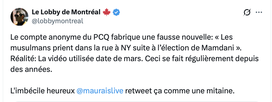 Maurais qui se fait encore prendre par une fake news? Venant d’Arthur??? 😂😂😂😂 Commentaire inutile à m’envoyer: pourtant Arthur est fiable! Navigation des articles ← « Comment je vais faire pour nourrir mes enfants? » Est-ce que tu peux prendre l’avion pour parler environnement ensuite? → Label Nom* E-mail Label Nom* E-mail 8 Commentaires Commentaires en ligne Afficher tous les commentaires Un piéton 6 heures il y a Maurais nous prouve tous les jours à quel point il est un moron sans fin. PQ Solide 4 heures il y a Répondre à Un piéton Tout à fait. Que Maurais soit un moron est une chose. Que des milliers de morons nous entourent est problématique. Le Saint 6 heures il y a « Oui mais ça pourrait être vrai! » -Un tata Euh… 5 heures il y a Répondre à Le Saint Merci d’avoir écrit ça: il y en a une gang sur ce site qui vont se garder une petite gêne de commenter… Bobos fragiles 5 heures il y a Répondre à Euh… Plaque va nous sortir son fameux ‘admettons’. Admettons que l’élection aurait été le 1er Mars ! Carl le Cat 4 heures il y a Répondre à Le Saint Que ce soit arrivé en mars est dégueulasse tout de même. PVC 5 heures il y a Mauvais Live Do Ré Mi Fa Sol Zanetti 2 heures il y a La gauche islamiste est passer de « les prières de rue ça n’existe pas » à « Il y a des prières de rue, mais à une date différente! » C’est une belle progression.