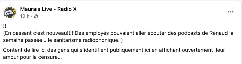 C’est effectivement une politique anti-streaming et ça n’a rien à voir personnellement avec RadioX