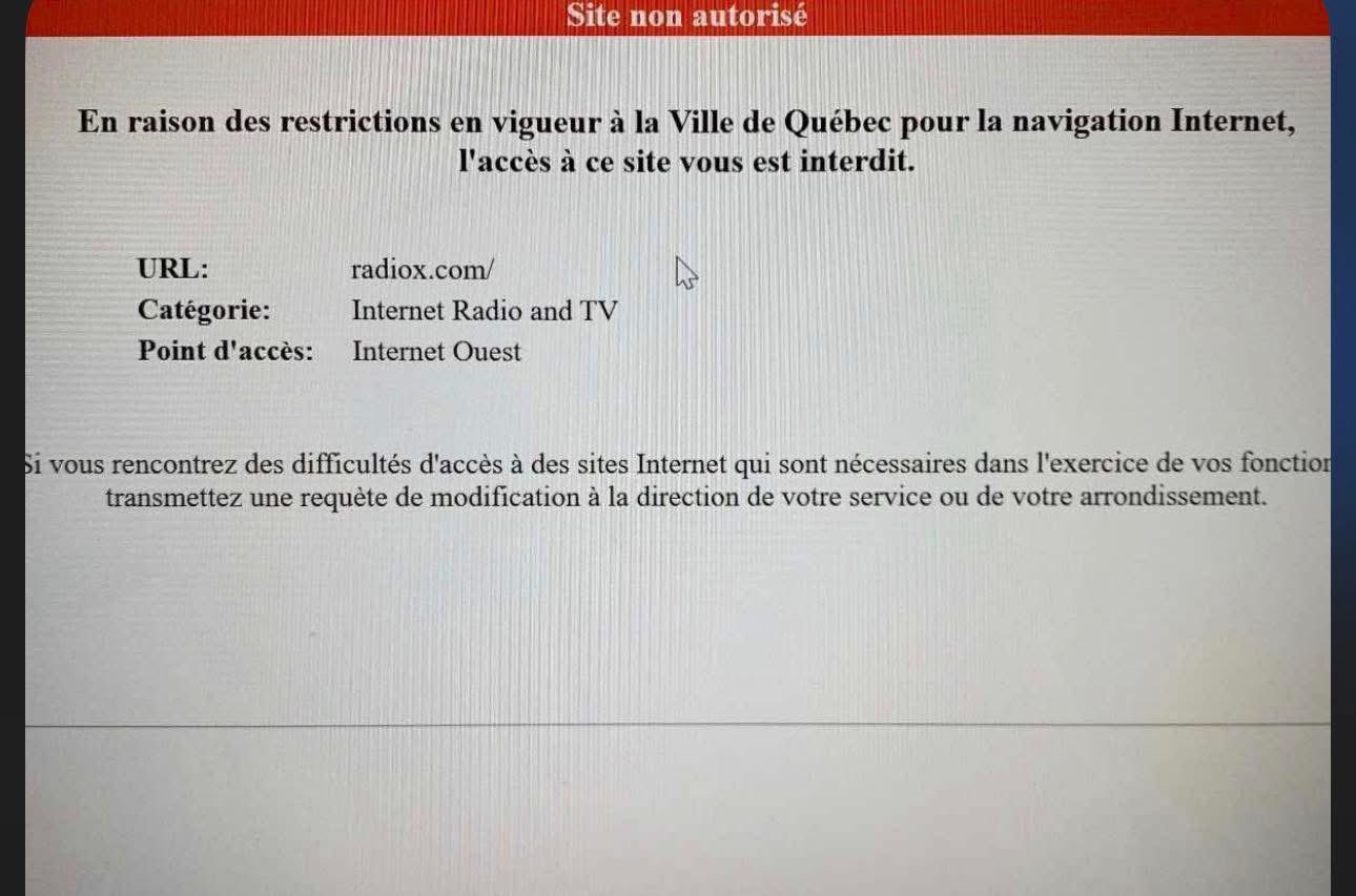 En quoi l’accès à Radio X est pertinent à l’exercice de la fonction de fonctionnaire pour la ville? C’est l’équivalent de youtube, pornhub…