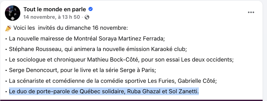 Tout le monde en parle est un organe satellite de Québec Islamique Solidaire depuis longtemps. Avec zéro impact, fort heureusement.