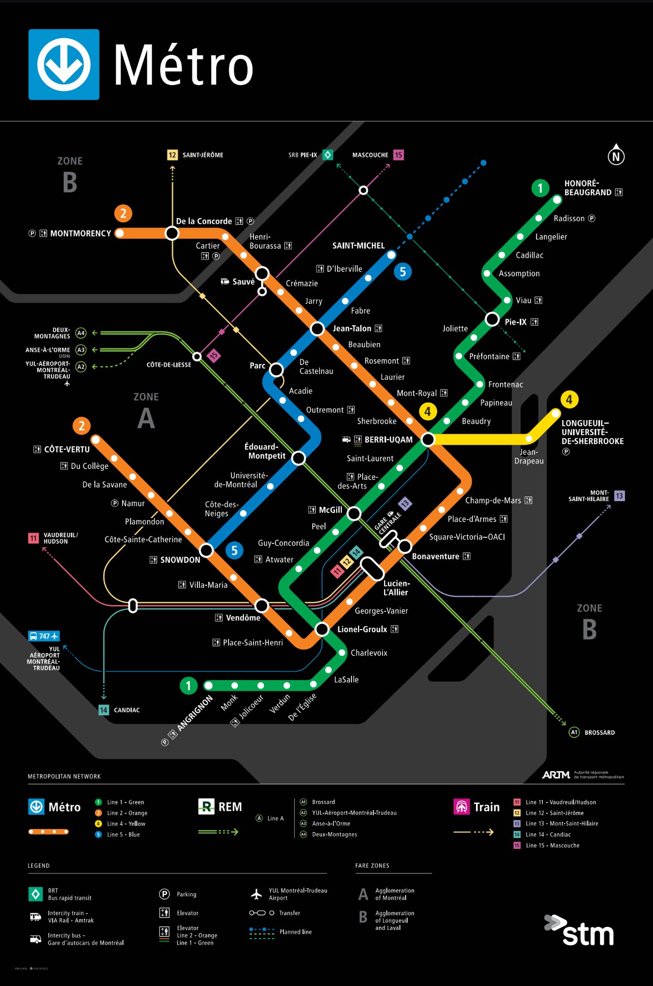Et à l’Est, les plans initiaux du métro prévoyait la ligne 7, qui devait emprunter le corridor de la rue Pie-IX. Ce projet n’a jamais abouti. Des années plus tard, ils y ont construit la ligne de bus 505 (fin années 80). Cette ligne a survécu jusqu’à ce qu’une dame soit frappée et y a laissé sa vie.