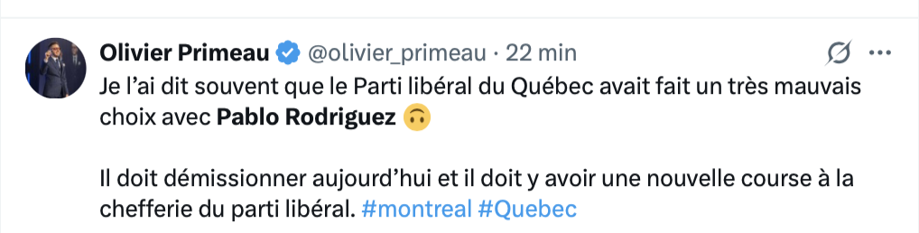 Pire, le PLQ perd une de ses meilleure oratrice pour un déserteur hatif du PLC. Je suis loin d’etre un voteur Libéral… j’ai pas recu de cash