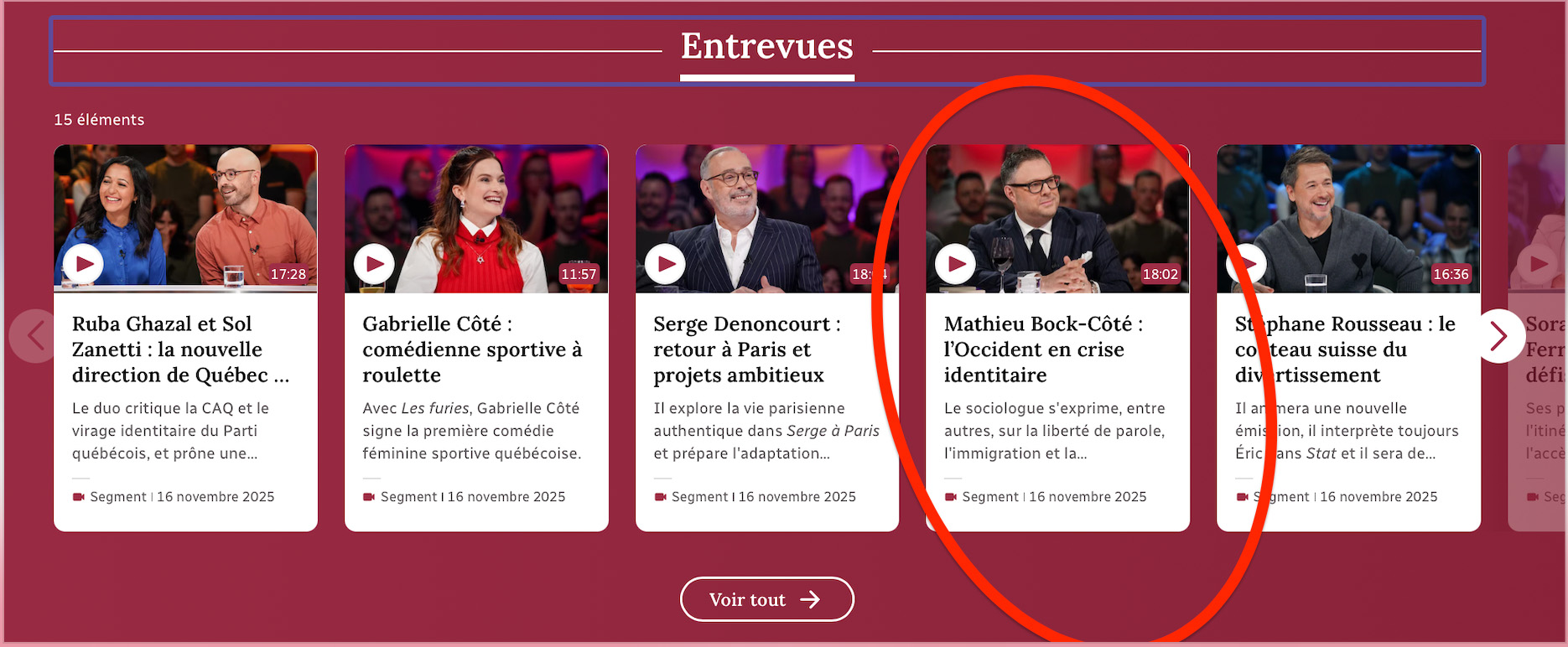 Clique, l’extrait qui a été retiré c’est sous la rubrique « en vedette », où, supposément, les entrevues les plus populaire sont regroupés.