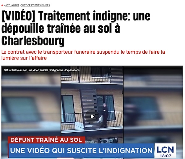 C’est vraiment horrible. Les employés doivent être deux et avoir une civière pour le transport. Le sac plastique doit être placé dans une housse de velours bordeaux ou marine. Je n’ai jamais vu ça de toute ma vie, et j’ai travaillé quelques années dans ce domaine. C’est un manque total de classe et de respect.