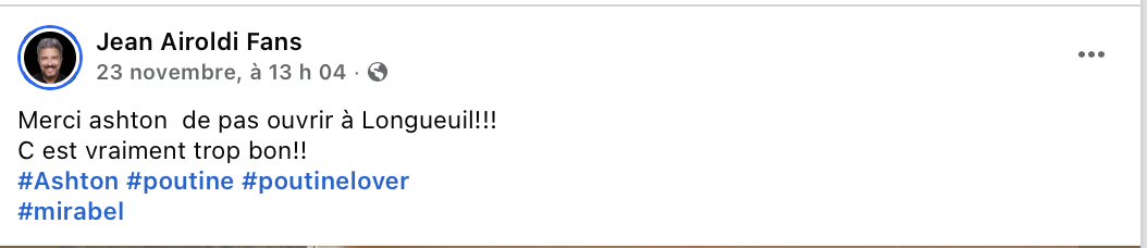 J’ai la preuve ici que Jean Airoldi n’a aucun goût! Le mec connaît rien à la mode et à la…. bouffe! 😂😂😂 Commentaire inutile à m’envoyer: un peu plus il lichait! Navigation des articles ← L’américain colon qui veut nous faire croire que c’est cher au Canada! C’est exactement comme ça que j’imagine les syndicats! → Label Nom* E-mail Label Nom* E-mail 4 Commentaires Commentaires en ligne Afficher tous les commentaires Jean Airoldi Pas Fans 1 heure il y a Jean Airoldi Fans, quessé ça cette vanité? Le diable est dans les détails 1 heure il y a Putain $$$ Un long et effroyable rot 43 minutes il y a I don’t like your fashion business, Mister, And I don’t like the drugs, That keep you thin, I don’t like what happened, To my sisters. First, we take Manhattan, The we take Berlin! BRROOOOOOOOAAAAAAAAAAAARRRRPP!!! Pas de sens ! 30 minutes il y a Imaginez si Versace, Gaultier, Rabane, Dior ou YSL avaient fait ça.