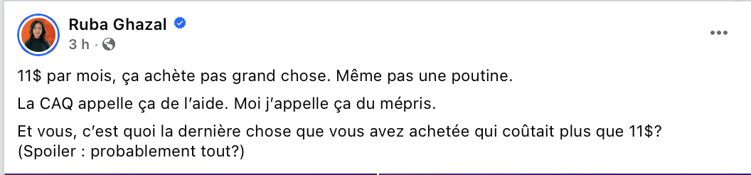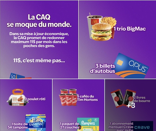 Je ne savais même pas que la CAQ donnait 11$ par personne, je m’en calisse-tu un peu de ce que ça ne paie pas?