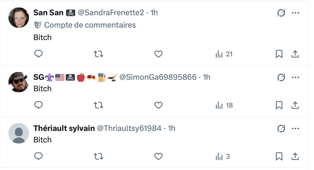 Beaucoup d’hommes blancs fâchés fâchés… un peu comme ici. Pas beaucoup d’immigrés par exemple, dans les celleux qui insultent.