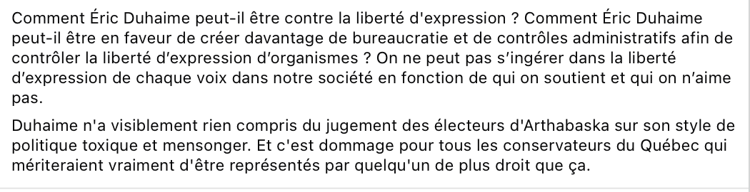 Dudu est un imposteur de la pire espèce qui s’offre un salaire de 130 000 $ par année (+ des bénéfices probablement tenus secrets grâce aux dons versés par ses coucous analphabètes) sans aucun élu et en collectionnant les défaites électorales.