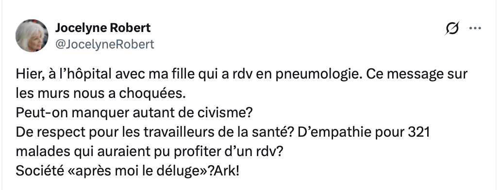 3) il est déjà très difficile de communiquer avec la clinique/hôpital pour obtenir un rendez-vous, c’est aussi difficile de l’annuler