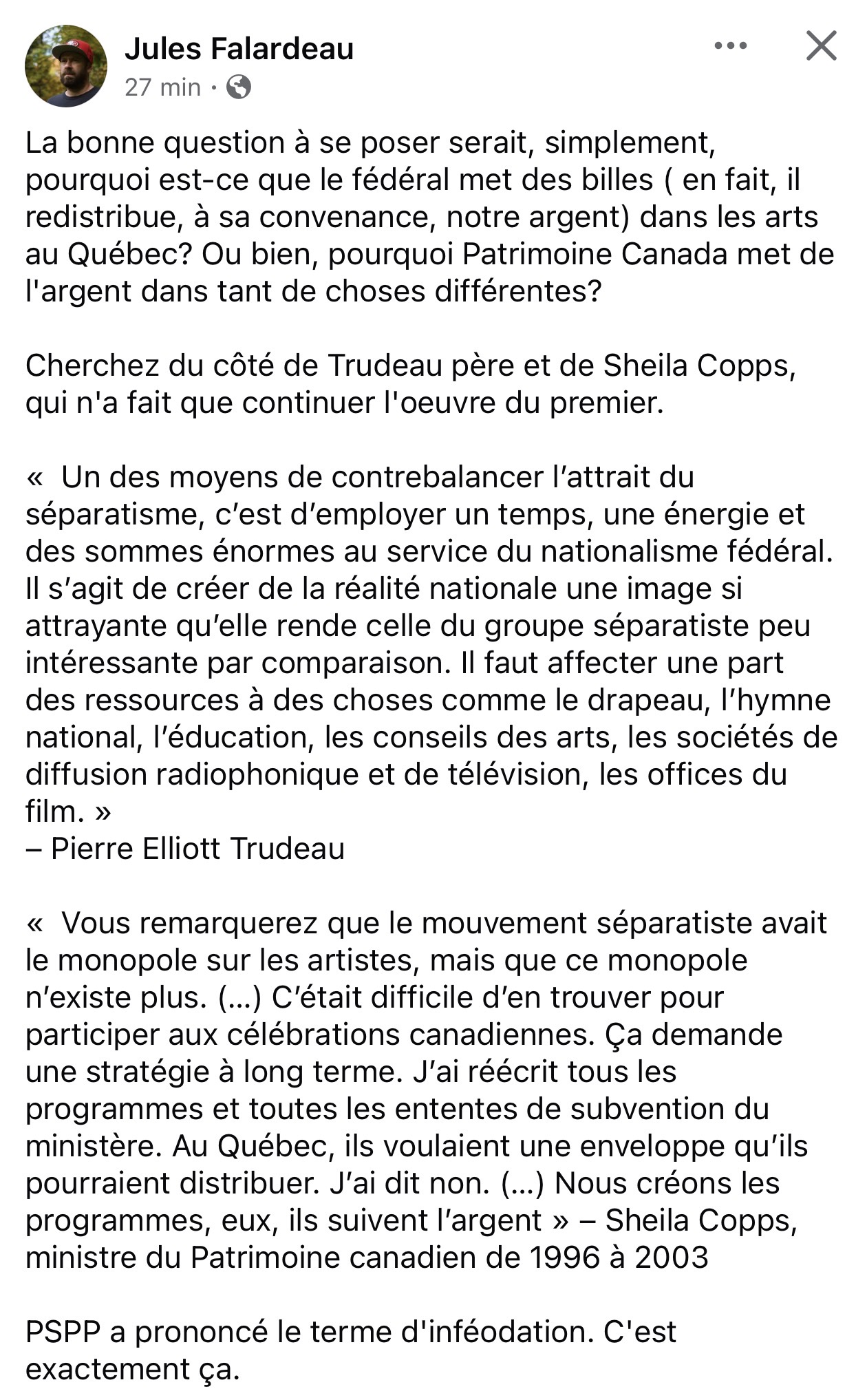 Le Québec fait toujours partie du Canada à ce que je sache. Alors circulez, il n’y a rien à voir! Encore une tactique du P-Cul pour brasser de la merde et essayer de mousser son option dont la majorité ne veut pas.
