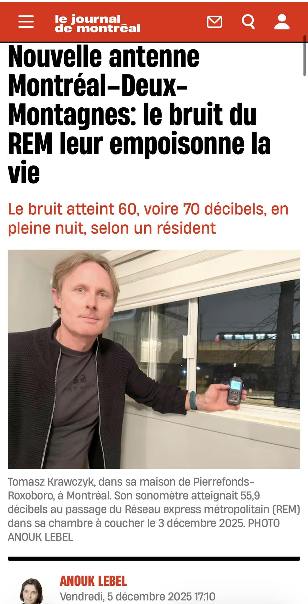 Nouvelle antenne Montréal-Deux-Montagnes : le bruit du REM leur empoisonne la vie (@AnoukLebel) https://t.co/qoLuRASNEZ