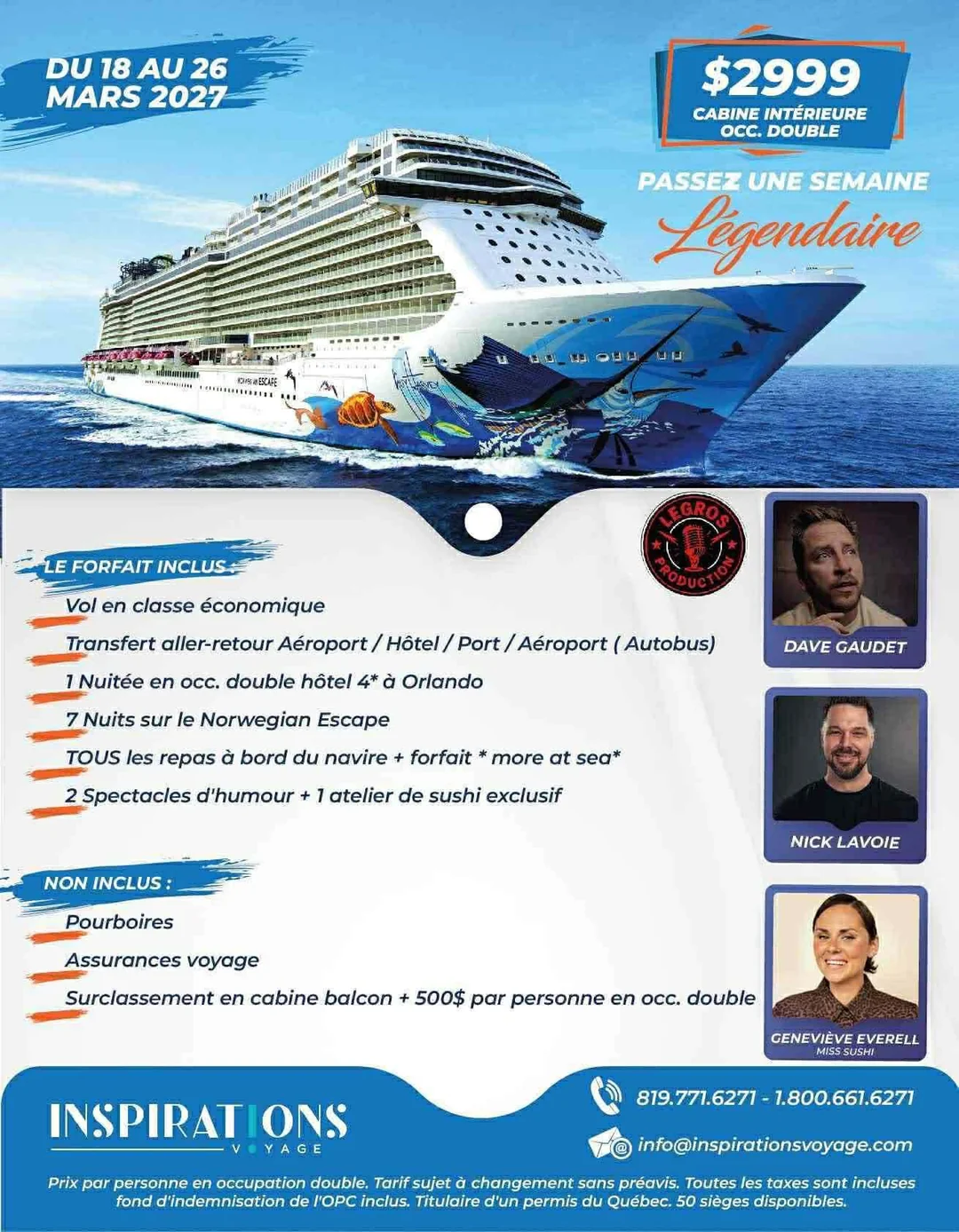 Moi je préfère la croisière à 49$ avec le show de Marie-Chantal Toupin avec Louis T. en première partie: