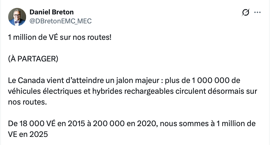 Un beau petit tableau à la QS pour souffler dans sa trompette, c’est bien, mais ça ne dit pas que le million de véhicule au Canada correspond à un gros 4% du parc automobile.